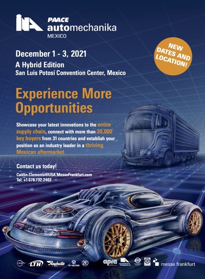 New dates and a new location have been announced for the 2021 INA PAACE Automechanika Mexico. After careful consideration, and in light of the ongoing COVID-19 developments in Mexico and globally, this year’s edition will be held December 1–3, at the San Luis Potosí Convention Center, in San Luis Potosí, Mexico.