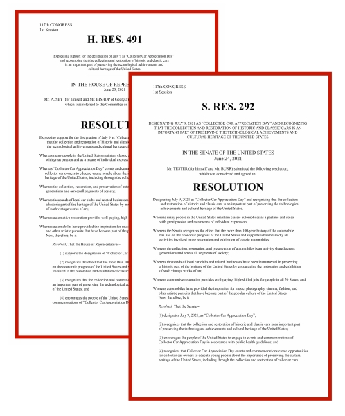 The U.S. Senate passed Senate Resolution 292 (S. Res. 292) at the request of SEMA recognizing July 9, 2021 as “Collector Car Appreciation Day (CCAD).” A similar resolution was introduced in the U.S. House of Representatives (H. Res. 491). The date marks the 12th commemoration of what has become an annual event to celebrate and raise awareness of the vital role automotive restoration and collection plays in American society.