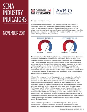 To learn more about the latest trends affecting the economy and the specialty-equipment industry, download the latest “SEMA Industry Indicators” report today at www.sema.org/research.