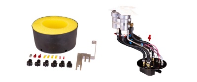 Compatible with both gasoline and E85 ethanol fuels, these pump modules are available with either dual or triple 450 liter-per-hour fuel pumps. The dual-pump module (Part# 18090) can support naturally aspirated gasoline applications up to 2,200 hp, naturally aspirated E-85 ethanol applications up to 1,500 hp, forced-induction gasoline applications up to 1,600 hp and forced-induction E-85 ethanol applications up to 1,100 hp. The triple-pump module (Part# 18091) can support naturally-aspirated gasoline applications up to 3,300 horsepower, naturally-aspirated E-85 ethanol applications up to 2,250 hp, forced-induction gasoline applications up to 2,400 hp and forced-induction E-85 ethanol applications up to 1,650 hp.