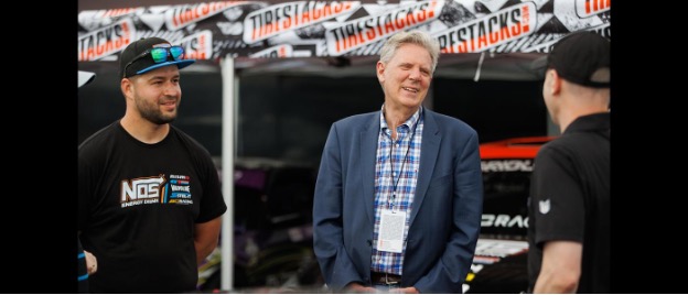 Energy & Commerce Committee Chairman and U.S. Representative Frank Pallone (D-NJ), center, talks to PROSPEC Driver Alex Jagger (left) and Eric Snyder from SEMA during the Formula DRIFT event.
