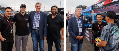 (Left): Rep. Pallone, Jim Liaw (left) from PRI, and SEMA’s Daniel Ingber (right) and Eric Snyder (2nd from left) meet with exhibitors at Formula DRIFT event in Englishtown, New Jersey.