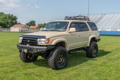 July 22: A ’97 Toyota 4Runner customized by Comstock HS in Kalamazoo, Michigan. The vehicle features a full exterior repaint in Quicksand Tan, Katzkin front and rear custom leather seats, Borla cat-back exhaust, True North Fabrications front and rear plate bumpers with spare-tire carrier swingout, and bronze-finished ICON wheels on Atturo 35x12.5R17LT Trail Blade M/T Tires, 34.8-in. height.