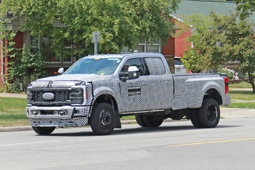 Here’s a first look at the ’23 Ford Super Duty King Ranch with its front end completely exposed.