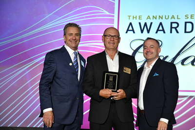 SEMA CEO Mike Spagnola (left) and SEMA Chairman of the Board James Lawrence (right) recognized the efforts of outgoing SEMA Board member Chris Douglas (center).