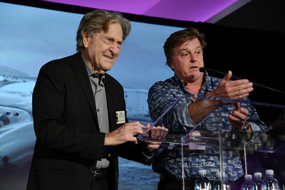 Chip Foose (right) introduced 2022 SEMA Hall of Fame member Gene Winfield (left).