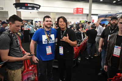 Featuring a familiar face, such as actor Sung Kang (right), or an iconic vehicle in your booth provides buyers with an identifiable, visual connection of the company’s target market.
