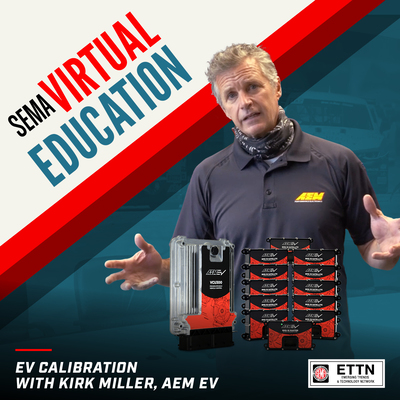 During the webinar “EV Calibration” presented by the SEMA Emerging Trends & Technology Network (ETTN), September 28, at 12:30 p.m. (PDT), participants will learn how a battery’s vehicle control unit (VCU) operates and why it performs the way it does. Attendees will hear from Kirk Miller, an expert in the performance aftermarket who focuses on the tuner, EV and motorsports market segments. As vice president of sales and marketing for AEM Electronics/AEM EV, Miller will break down the basics for working on EVs.
