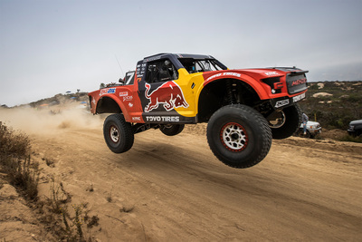 Bryce Menzies and his #7 Red Bull/Toyo Tires/KMC Wheels AWD Mason Motorsports Trophy Truck took the overall win at the SCORE Baja 400.