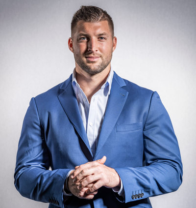 Tim Tebow is a two-time national champion, Heisman Trophy winner, first-round NFL draft pick and a former professional baseball player. The five-time The New York Times best-selling author, speaker and football analyst is most passionate about his work with the Tim Tebow Foundation (TTF), whose mission is to bring faith, hope and love to those needing a brighter day in their darkest hour of need. TTF is currently fighting for people who cannot fight for themselves in more than 70 countries, and counting, through four primary ministry focuses with 16 initiatives. Tebow is married to Demi-Leigh Tebow, a speaker, influencer, entrepreneur and Miss Universe 2017. Tim and Demi live in Jacksonville, Florida, with their three dogs, Chunk, Kobe and Paris.