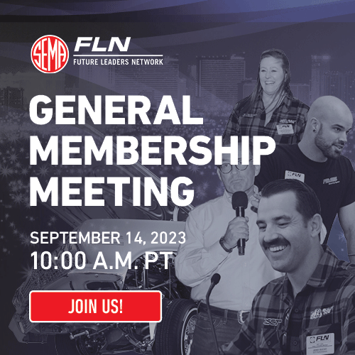 The SEMA Future Leaders Network (FLN) is hosting an online General Membership Meeting on Thursday, September 14, at 10:00 a.m. PDT.