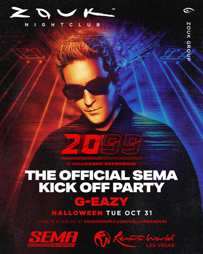 Join SEMA Show organizers for the official SEMA Kickoff Party at the premier Las Vegas venue Zouk Nightclub on the evening of Tuesday, October 31, featuring a live performance by G-Eazy. All exhibitors and attendees with valid SEMA Show credentials are invited to enjoy complimentary expedited entry until 1:00 a.m. PDT.