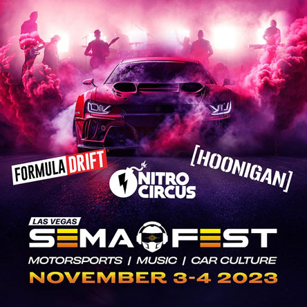 In addition to two stages featuring 22 musical acts, SEMA Fest attendees will enjoy a variety of unforgettable motorsports entertainment, including demonstrations from Formula DRIFT, Hoonigan and Nitro Circus.