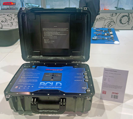 One product, the BCLD battery and coolant leak detector by Redline Detection, caught several buyers' eyes as the only EV test technology that can pinpoint leaks for fast repair and for its ability to meet all OEM warranty and safety standards.