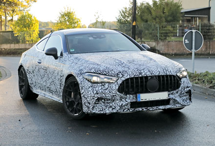 The camouflaged Mercedes-AMG CLE 63 seen here is expected to allow Mercedes-Benz to field a rival to the BMW M4 and Audi RS5.