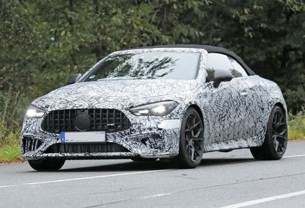 SEMA News sources have spotted camouflaged performance versions of the Mercedes CLE Convertible and Mercedes CLE Coupe in Germany, believed to be the new AMG 53 and AMG 63 variants. Photographers captured the cars in action, sporting a few aggressive design elements you won't find on the standard CLE-Class that debuted earlier this year, which replaced the coupe and convertible versions of the C-Class and E-Class.