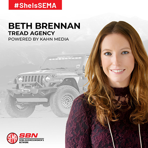 The SEMA Businesswomen's Network (SBN) has named Beth Brennan, president of TREAD Agency powered by Kahn Media, as the network's newest #SheIsSEMA spotlight member.