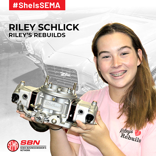 The SEMA Businesswomen's Network (SBN) has named Riley Schlick, owner of Riley's Rebuilds, as the network's newest #SheIsSEMA spotlight member.