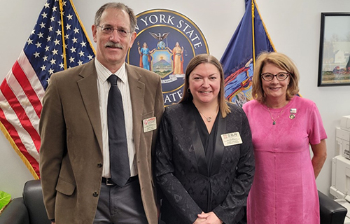 Barry Alt of Motorhead Digital (left), Cora Jokinen of Torq-Masters Industries (middle), met with New York Senator Pam Helming (right) during the SEMA New York Rally to discuss policies supporting industry growth.