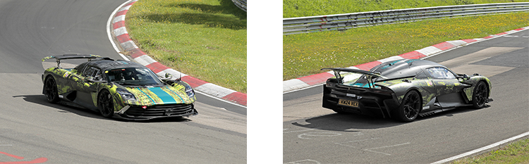 The AMR will retain the powertrain of the standard Valhalla, featuring a 4.0L twin-turbo V8 engine delivering 812 hp and supplemented by three electric motors that contribute an additional 200 hp, propelling the car to a top speed of 218 mph. However, to push the performance envelope even further, Aston Martin aims to achieve a higher top speed in the AMR through weight reduction and advanced aerodynamic enhancements. While the weight savings are not immediately visible, significant design modifications have been spotted on a prototype tested at Germany's Nürburgring racetrack, according to new images.