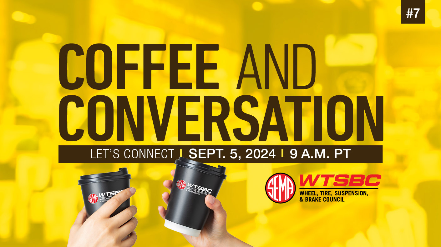 The SEMA Wheel, Tire, Suspension & Brake Council (WTSBC) will host its next online Coffee and Conversation networking event on Thursday, September 5, at 9 a.m. PDT. Register here.