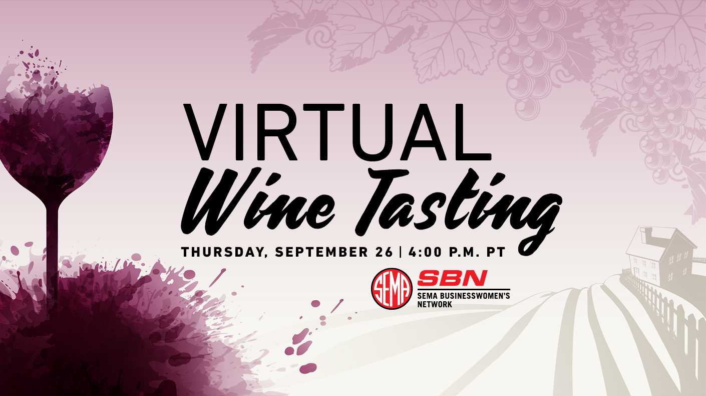 The SEMA Businesswomen's Network (SBN) is offering a Virtual Wine Tasting event on Thursday, September 26, at 4:00 p.m. PDT to help women in the automotive aftermarket industry grow their professional network. Register here!
