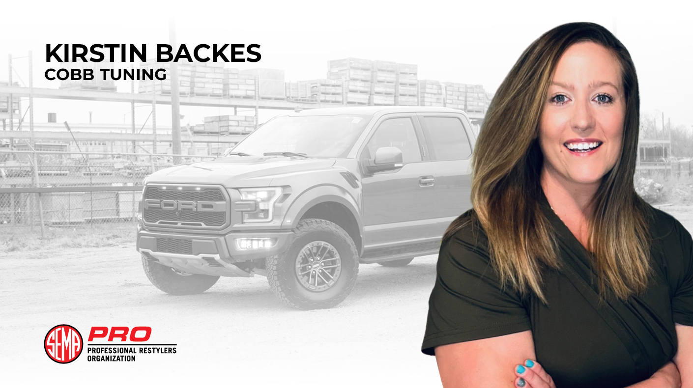 The SEMA Professional Restylers Organization (PRO) has named Kirstin Backes, sales and marketing director, trucks at COBB Tuning, as the council's newest spotlight volunteer. Get to know Backes in her interview with SEMA News below.