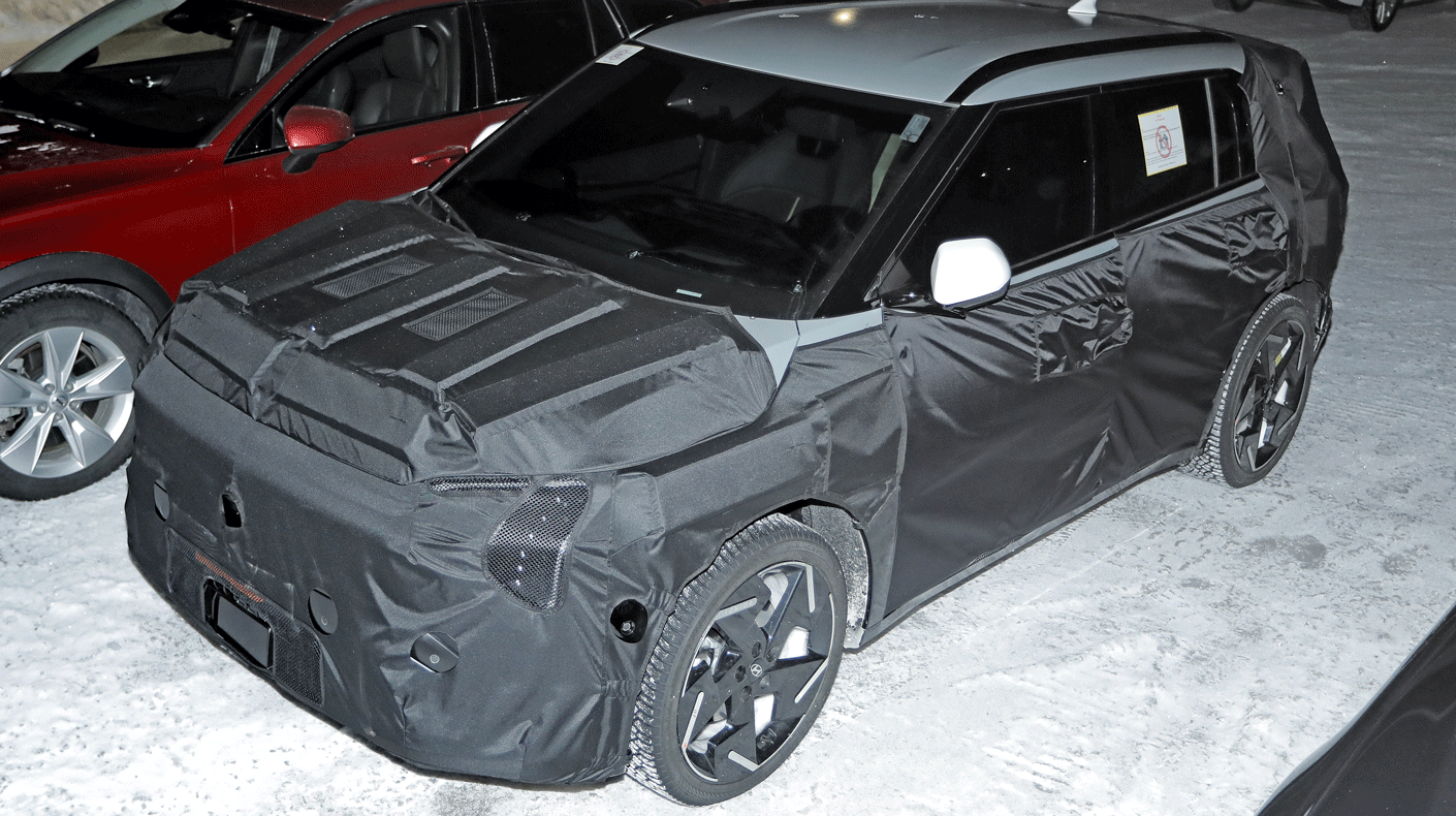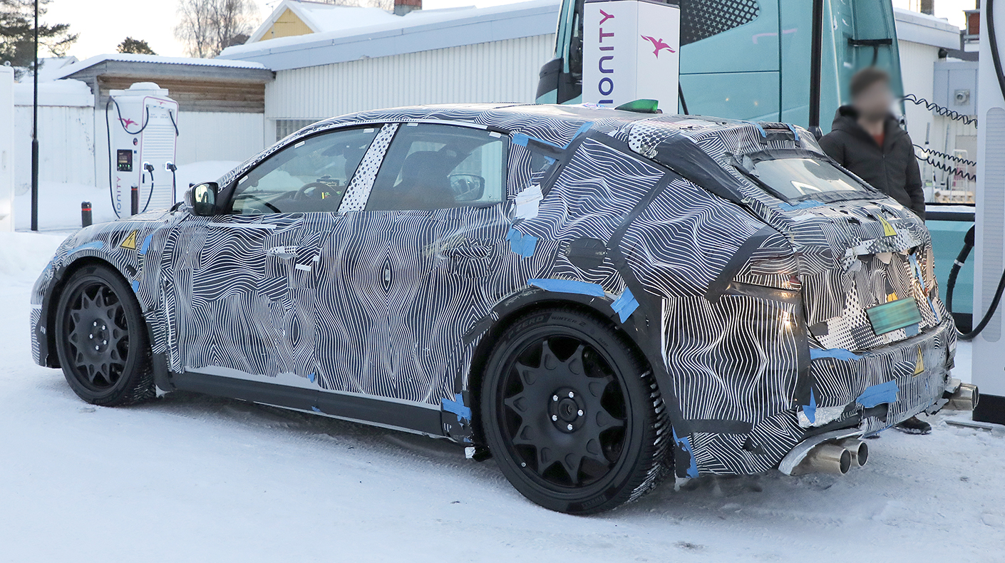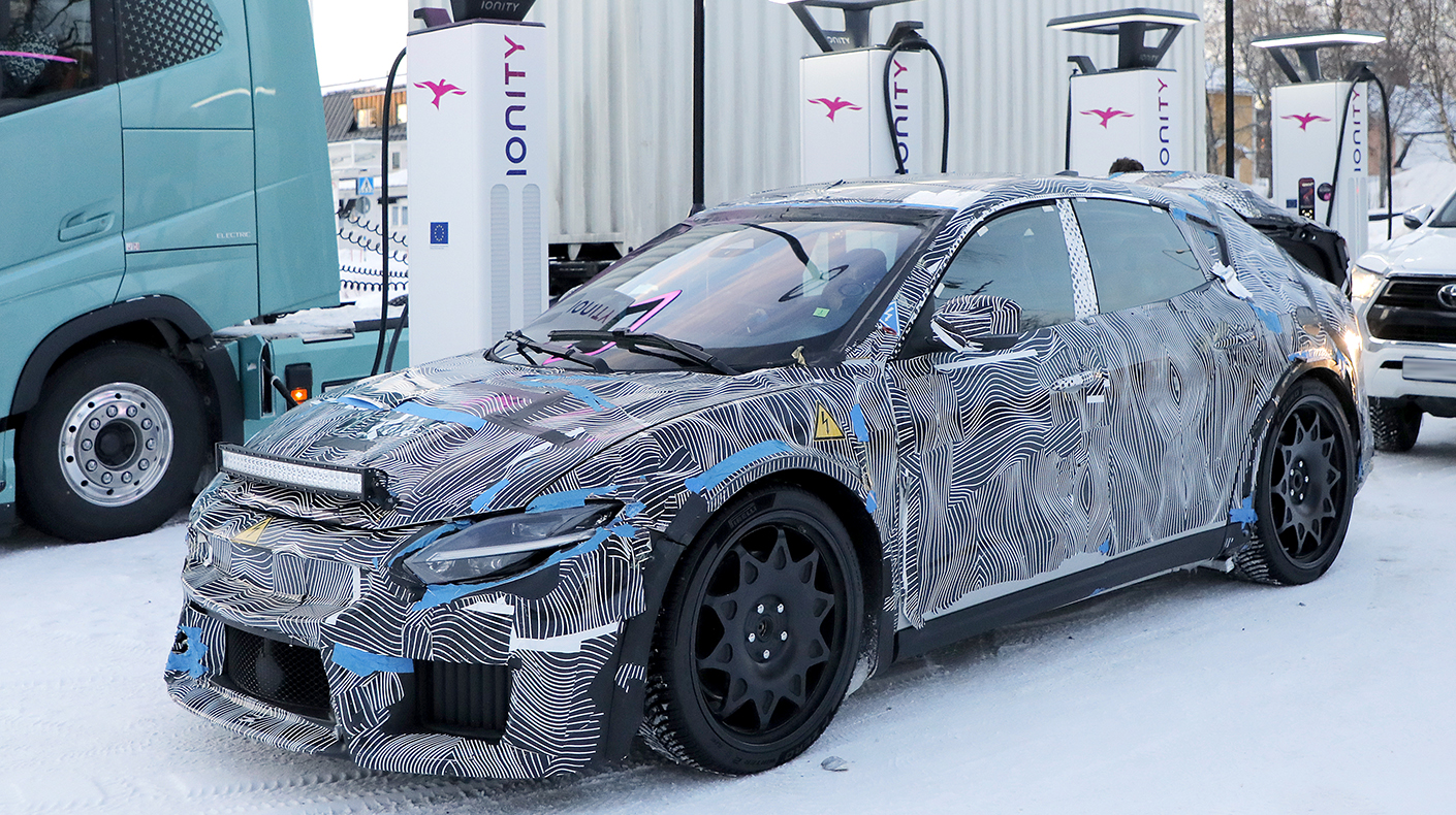 Spy photos of a test vehicle parked somewhere in northern Sweden showcase a more aggressive bumper design and the inclusion of 19-in. tires, compared to the 17-in. tires found on the standard model, which is designed to optimize driving range. Yellow calipers and GT-branded seats with yellow stitching complete the sporty character of what's designed to be the most powerful EV3 yet.