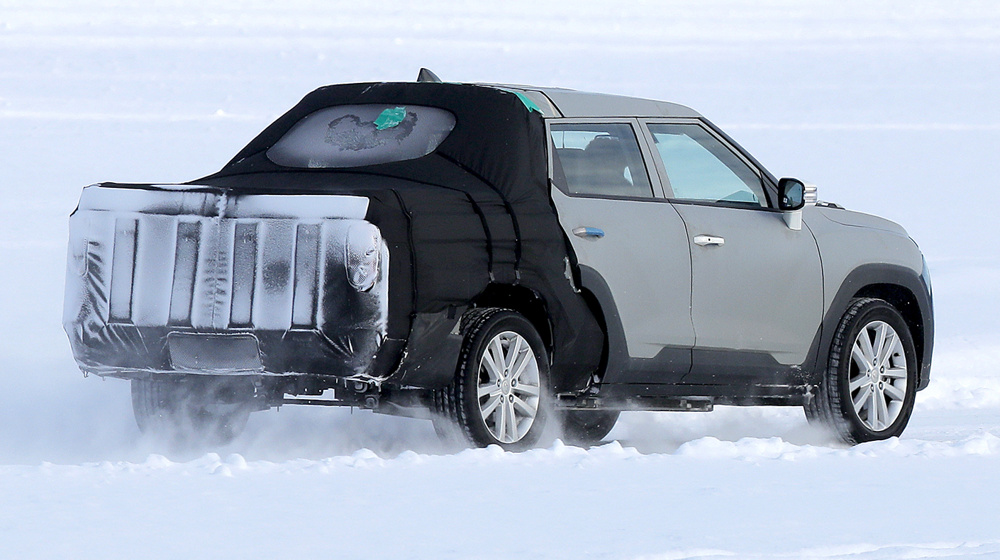 The new pickup is based on the platform of the Ssangyong Torres, the brand's latest SUV, and is available in select markets in Europe as the electric Torres EVX, and as a model with a 1.5L gas engine. For the Torres pickup pictured here, which is moving to a passenger-car platform with a self-supporting body, the wheelbase has been extended in order to achieve a length of up to 17 ft.