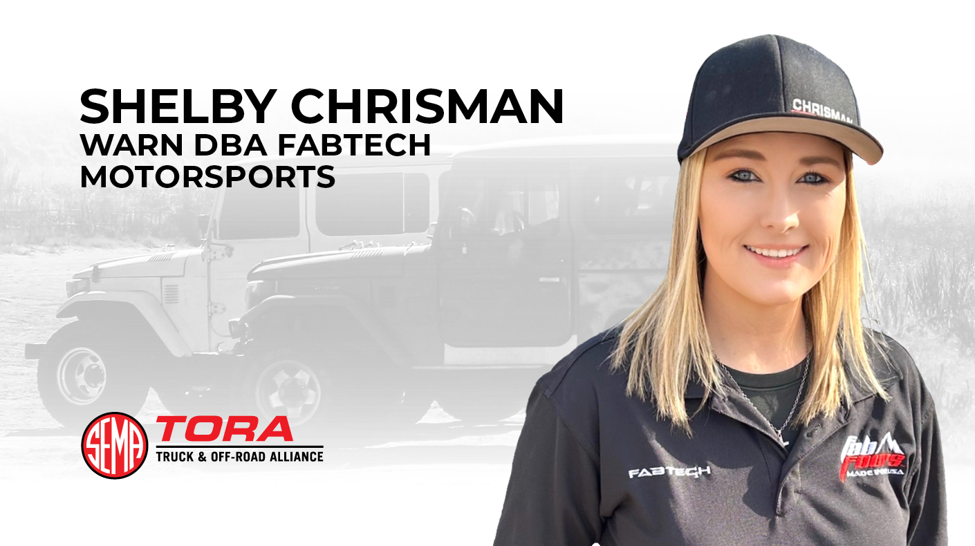 The SEMA Truck & Off-Road Alliance (TORA) named Shelby Chrisman, buyer at Warn DBA Fabtech Motorsports, as the council's newest spotlight member. Get to know Chrisman in her interview with SEMA News below.