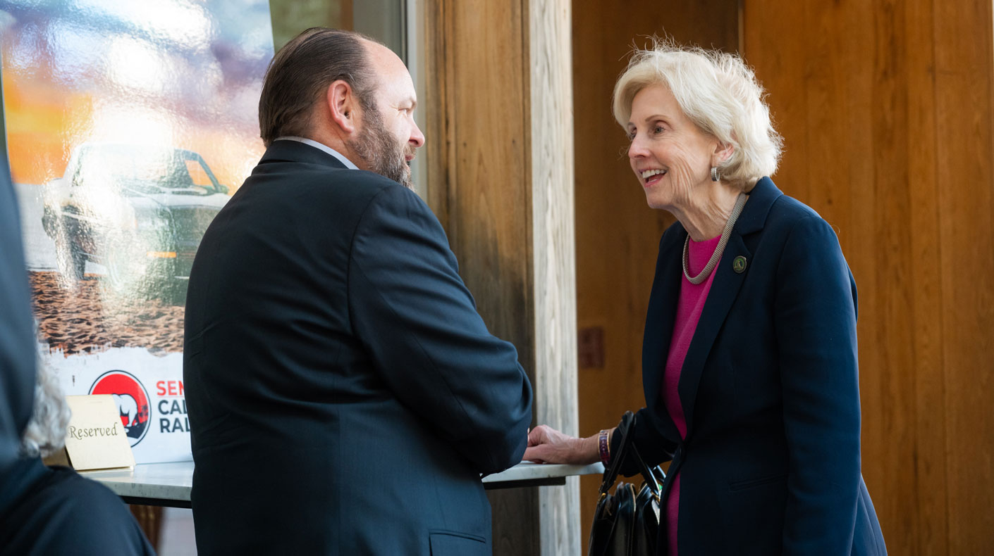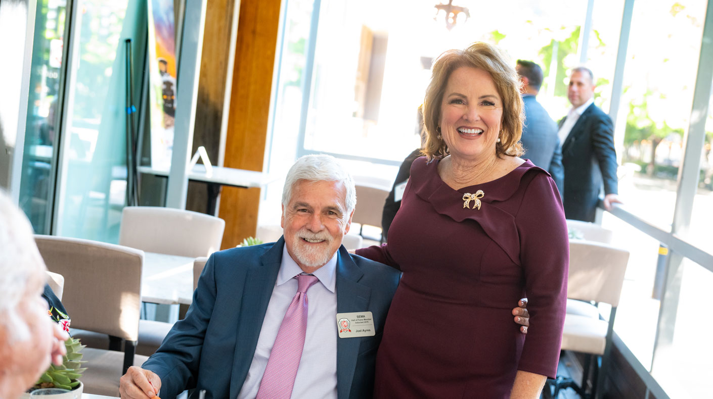 Joel Ayres, 2015 SEMA Hall of Fame inductee, and Senator Shannon Grove at the 2025 SEMA California Rally in Sacramento.
