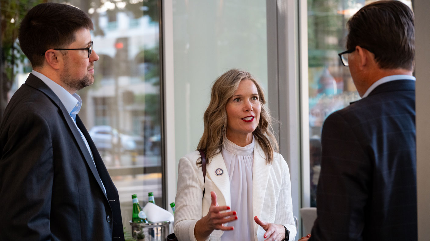 (Left to right) Christian Robinson, SEMA Director of State Government Affairs; Melanie White, SEMA Board Chair-Elect; and Senator Brian Jones at the 2025 SEMA California Rally in Sacramento.