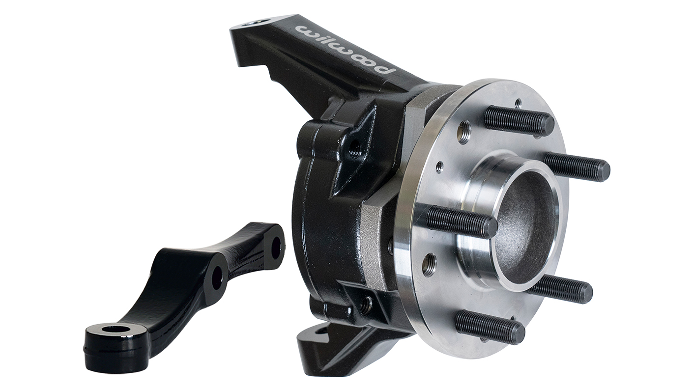 Features include a 2-in. drop lowering the front suspension, strengthened radial caliper mounts, precision-machined steel hub assembly with sealed unit wheel bearing and dual bolt patterns for five on 4.75-in. or 4.50-in. wheels. Includes a bolt-on steering arm for typical front-steer applications. The ProSpindle Hub kit is engineered to work with a complete series of new Wilwood brake kits using 12.19-in. to 15.00-in. rotors and four or six piston calipers.