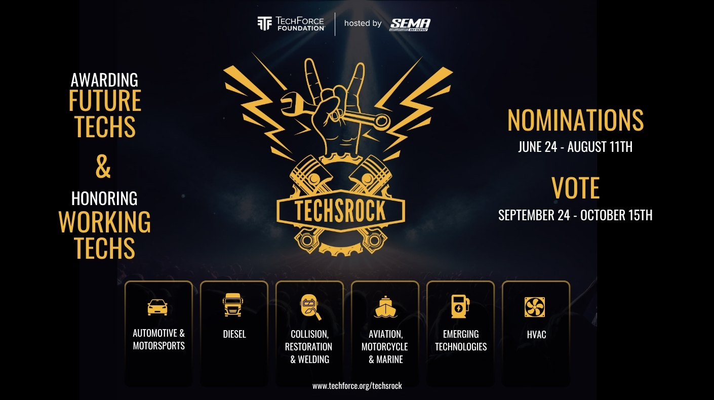 Know a student or working tech who deserves recognition? The TechForce Foundation and the SEMA Show, official host of the 2025 Techs Rock Awards, are joining forces to spotlight the technicians who are powering our world forward. These awards celebrate the skill, passion and impact of students and professionals in technical careers.