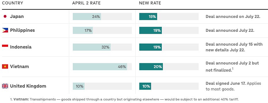 New Japanese US Tariffs deal chart, as of July 24, 2025
