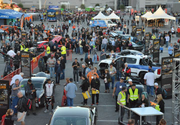Even as exhibitors in the trade-only 2015 SEMA Show wrapped up their last transactions, hundreds of custom vehicles roared to life and poured out the doors of the Las Vegas Convention Center to join the eagerly anticipated SEMA Cruise. Outside, approximately 3,000 delighted enthusiasts waited, lining the streets to witness a steady stream of custom musclecars, perfectly restored classics, high-performance pro-tourers, outrageous off-road machines, exquisite hot rods, stylish lead sleds, sleek sports cars, fabulous lowriders, imported exotics and all manner of one-of-a-kind, built-from-the-ground-up creations. As daylight faded into night, the crowd took a short walk across the street to the vast Gold Lot, where attendees discovered that the party had just begun.