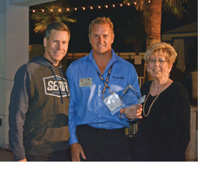 ![]() Dwight Forrister of Distinctive Industries was selected to receive the PRO Jim Borré Lifetime Achievement Award. Dave Edmondson (center) of Roadwire accepted on Forrister’s behalf. |