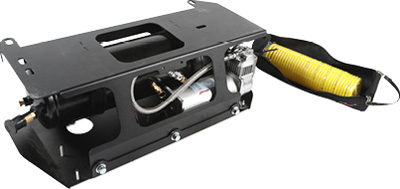 Kleinn Air Horns | The JKOBA is a heavy-duty air supply with skidplate. Features the only waterproof 12-volt air compressor. The 1.76-cfm compressor and 2.8-gallon tank can power air horns, air lockers and air tools and inflate 37-in. tires. The JKOBA is 100% bolt-on, with no drilling, cutting or welding required. Kit includes tire inflator with gauge and storage bag. PN: JKOBA Information: www.kleinn.com or 520-579-1531. |