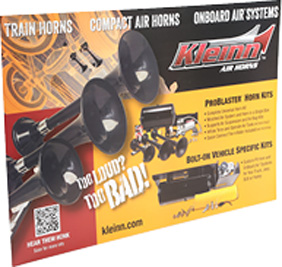 Kleinn Air Horns | The Kleinn store poster is a not-so-silent salesperson with eye-catching graphics and a compelling sales pitch. The poster features a QR code to take the viewer to a dedicated Kleinn website with product information and the option to hear the horns on a phone. The site can be added to a smartphone as a widget to use as a sales tool. PN: KLN-POSTER1 Information: www.kleinn.com or 520-579-1531. |