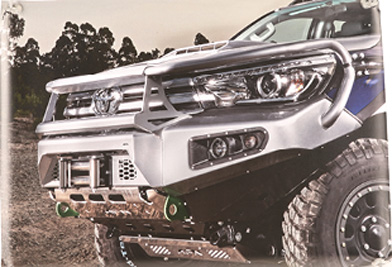 Lund International | Customize bumpers for any terrain. Made in America from 3/16-in. steel, features include a 20W LED light bar, powdercoated finish, D-ring mounts, easy-install factory mounting points, and centerpiece stubby steel cap with welded ends. Optional bolt-on side pieces and center bull bar, and a winch plate can be added. Information: www.lundinternational.com or 800-241-7219. |