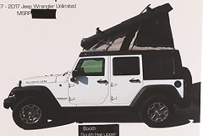 Ursa Minor Vehicles | J30 camper for Jeep Wrangler Unlimited. Bolt-on hard top with pop-up roof includes bed and allows standing room. Ships ready to install. Options such as windows, racks, power outlets and even color-matched paint available. Fits all ’07–’17 Jeep Wrangler Unlimiteds, all trim levels, replacing OEM soft or hard top. PN: J30-TB3 Information: www.ursaminorvehicles.com or 619-424-9030. |