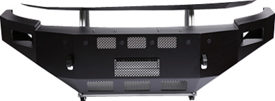 Hammerhead Armor | A front-end light bar for trucks. Made from .120-in. plate steel. Mounts utilizing existing vehicle mounting points and does not require any drilling to the vehicle. Product comes complete with mounting kit. Provides a mounting for a single-row LED and two flush-mount LED lights in the supports. Coated with a proprietary black wrinkle powdercoat. PN: 600-56-0541 Information: www.hammerheadarmor.com or 855-448-6844. |