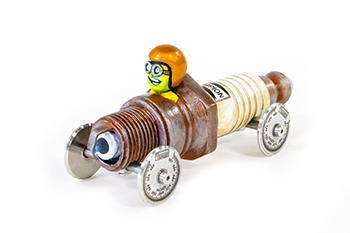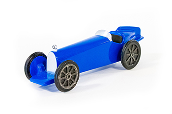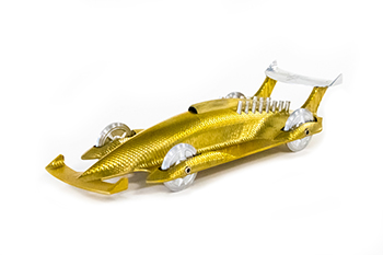 “I used some of the same techniques as before, but as far as speed, every little thing counts,” Meaux said. “This year’s car weighed in at 20.5 oz., but I don’t think weight has as much bearing as people think, because last year’s car weighed only 16 oz. Not only were we going to win the race, but we also had to build something that would ‘pop’ at the auction. Typically, the cars that look the coolest are going to get the most money. We wanted something that would look expensive and stand out but would also get the job done.”