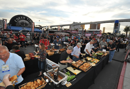 The purpose of the SEMA Show is to do business. Anything that gets in the way of that can be thought of as an obstruction, yet we all have to eat, especially since attending the SEMA Show can be a strenuous undertaking. It’s not unusual to walk many miles in a single day, so addressing the need to keep the fires burning without sacrificing too much floor time can be a challenge worthy of some consideration.