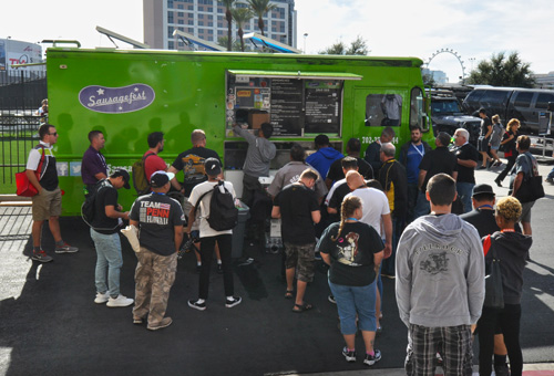 Grab a quick bite to eat from the various food trucks along North Road (between North Hall and the Westgate Las Vegas Resort & Casino). |