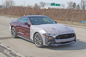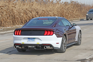 Mustang HybridIs this a mule for the Mustang hybrid? According to sources familiar with the Blue Oval, it’s highly likely.This Mustang mule was caught testing with two other Mustangs with identical camo—another GT and a Bullitt. Ford has strategically camouflaged just the A-pillar forward on this vehicle, as with earlier Ford powertrain mules (F-150 hybrid camouflaged front; F-150 diesel camouflaged bed). The only real change that can be seen is the placement of the foglights. Around back, there are virtually no changes. If this is the Mustang hybrid, expect it to borrow the 3.3L V6 hybrid setup from the recently debuted Explorer Hybrid. And finally, don’t expect an official on-sale date until sometime around 2022–2023. | ![]() |