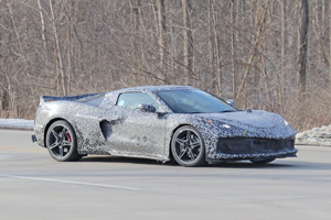 Prototype CorvetteHere is the latest prototype of the mid-engine Corvette, with photos of the production headlights, taillights, “Batwing” and other details that we haven’t seen before.Things get interesting out back, as we get our first look at the production-intent taillights. We also captured the dynamic turn indicator sequence, which commences inboard and progresses out toward the edge of the vehicle. This particular tester also appears to have a rather aggressive front fascia, but we believe that it’s because it’s not wearing part of the front bumper cover, but it could also just be the camo playing tricks. Official debut expected in late 2019 or first quarter 2020. | ![]() |