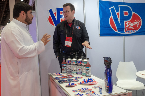 | “We were most gratified to see so much brand recognition for VP from the multiple countries in the region,” said Peter Coleman (right), business development manager for VP Racing Fuels. “We had the opportunity to discuss both our current distribution and potential to expand further, and SEMA’s actions in extending our influence in this lucrative market were very much appreciated.” | “The Middle East SEMA experience has provided us with increased opportunities for product development and sales of brake systems for SUVs, off-road and armored vehicles that we would not have been aware of without our participation in the event,” said Robert Roese (right), business development for Wilwood Engineering. “I cannot say enough about the positive experience of meeting so many new customers.” | |