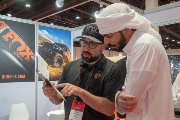“The SEMA Middle East trip was an excellent opportunity to validate and strengthen our current business relationships in the region,” said Jeff Hermann (left), product manager for powered vehicles at Fox Factory. “We were also able to speak directly to consumers at the show and get valuable firsthand feedback on trends and market requests specific to the region.”