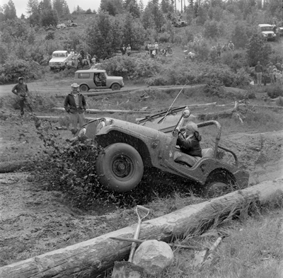 Things got more serious that afternoon with a timed cross-country event: “If you ever tried to make a sharp right-hand turn while cresting a left-leaning hillside with both front wheels off the ground, you’ll have an idea of what these poor guys and gals had to go through,” Lang wrote. “Quite a number ended up in the bushes trying to get around the course in record time, and one guy even rolled his Jeep on a turn, got back on course, and finished with one of the best e.t.’s.”